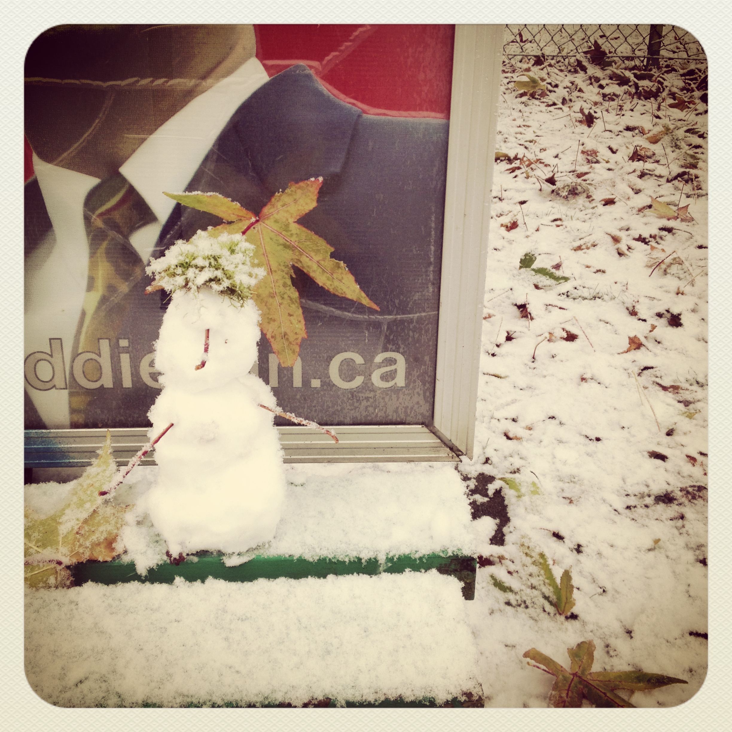 Take this little snow man waiting for a bus. A companion in wait, keeping you company till the 144 arrives to take you to school. A mossy little hat and a twig like nose. much attune to being an ornament of nature.