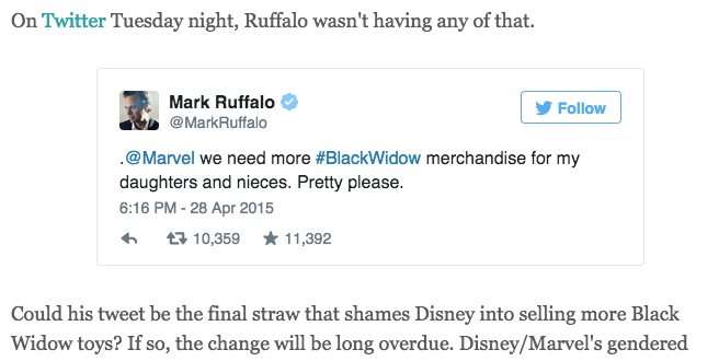 How exactly could this tweet be the final straw? Do we know his tone when he punched those numbers into his tweety box? How often does he pester Marvel for Black Widow toys?